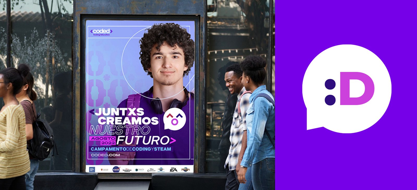 El principal objetivo del branding de Coded es comunicar su misión de impulsar la educación tecnológica en Latinoamérica a través de programas STEAM innovadores y experiencias prácticas en lugares emblemáticos como Disney Orlando y Universal Studios. Se busca reflejar los valores de curiosidad, tecnología y una visión futurista en su identidad visual, conectando emocionalmente con un público joven y dinámico interesado en ciencia, tecnología, arte y matemáticas.