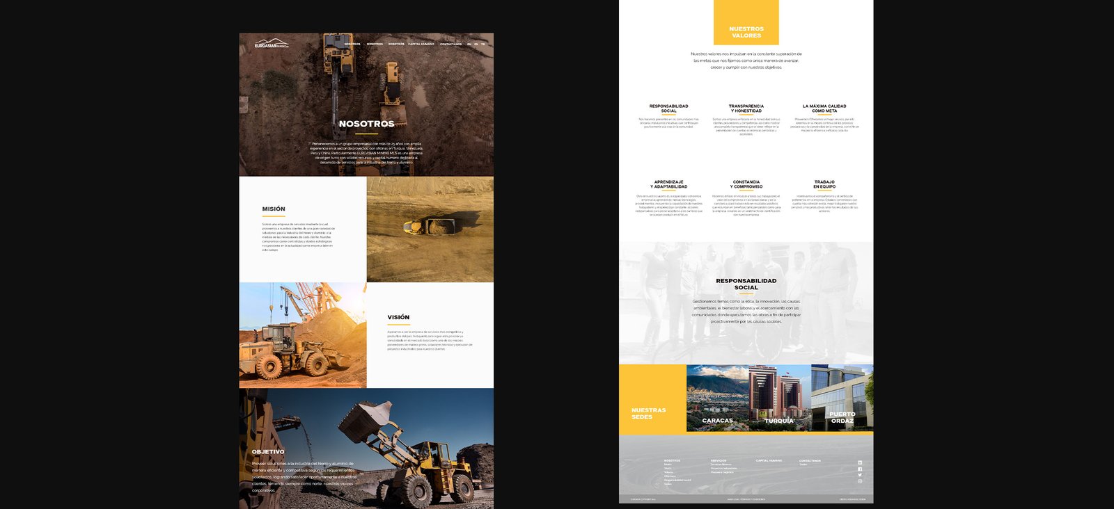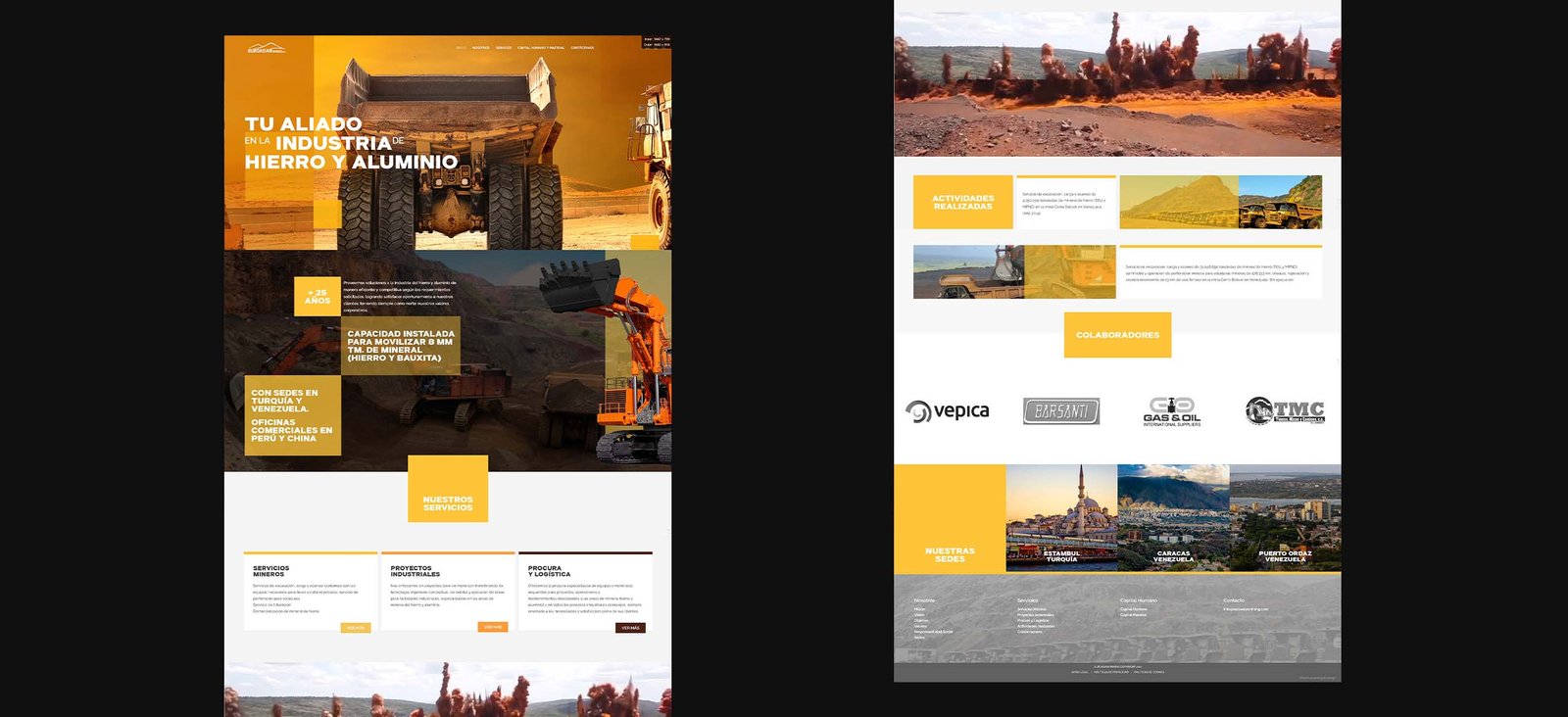 Desarrollar una página web para una empresa minera que opera en Venezuela. La web tiene como objetivo principal mostrar los productos y servicios que la empresa ofrece a sus clientes, así como informar sobre su trayectoria y su compromiso con la sociedad y la responsabilidad social, para así atraer compañías y alianzas internacionales.