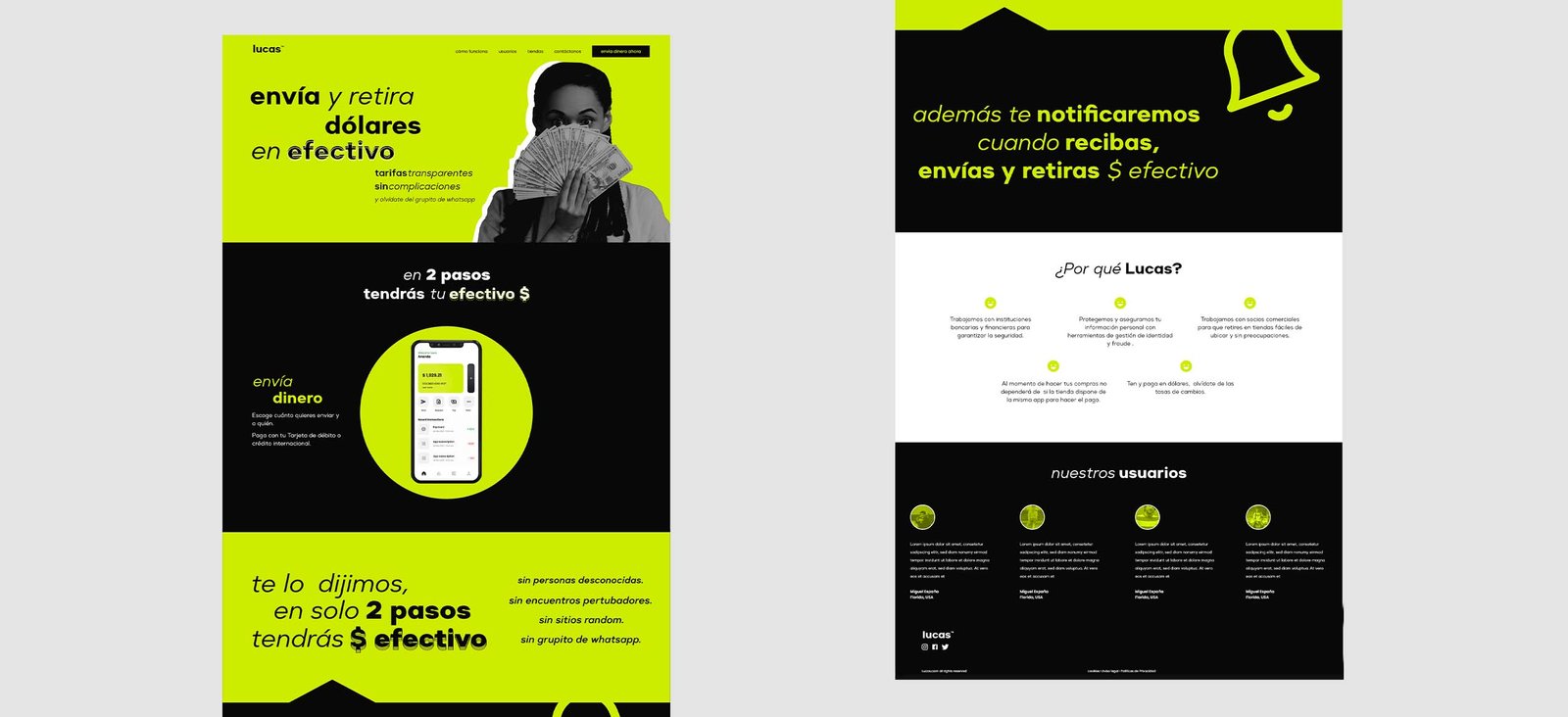 Se diseñó la identidad visual para ser vistosa y llamativa, con una imagen moderna y atractiva que apunta a este público específico. Paga Lucas tiene como meta principal ser la plataforma más popular entre la generación adulto joven en Venezuela, al proporcionar soluciones innovadoras y efectivas que simplifiquen el intercambio de divisas y la administración de remesas, todo ello en un entorno atractivo y visualmente agradable.