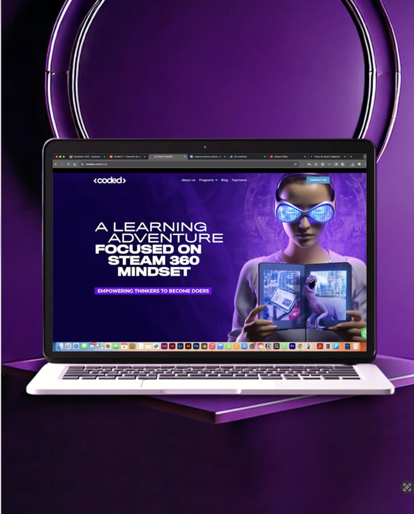 La web de Coded ha sido diseñada para dar a conocer la marca y cada uno de nuestros programas, ofreciendo a los usuarios acceso detallado a toda la información relevante. Más que una plataforma informativa, es un espacio que refleja la misión: transformar la educación en experiencias inmersivas e innovadoras. A través de esta web, se busco conectar con estudiantes, padres y profesionales que buscan un aprendizaje basado en el STEAM.